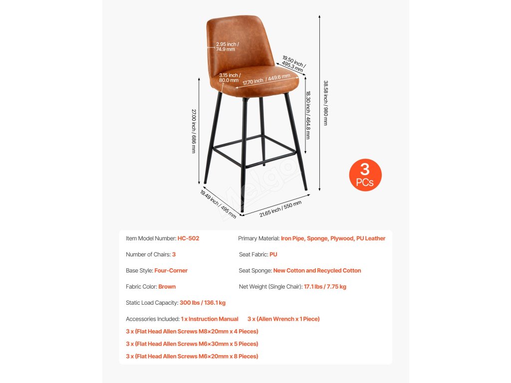 Pultová stolička má vintage PU kůži a opěradlo racionálního tvaru, které kombinuje moderní a hřejivý styl. Bez námahy se začlení do různých stylů interiéru a pozvedne celkový dojem z prostoru.