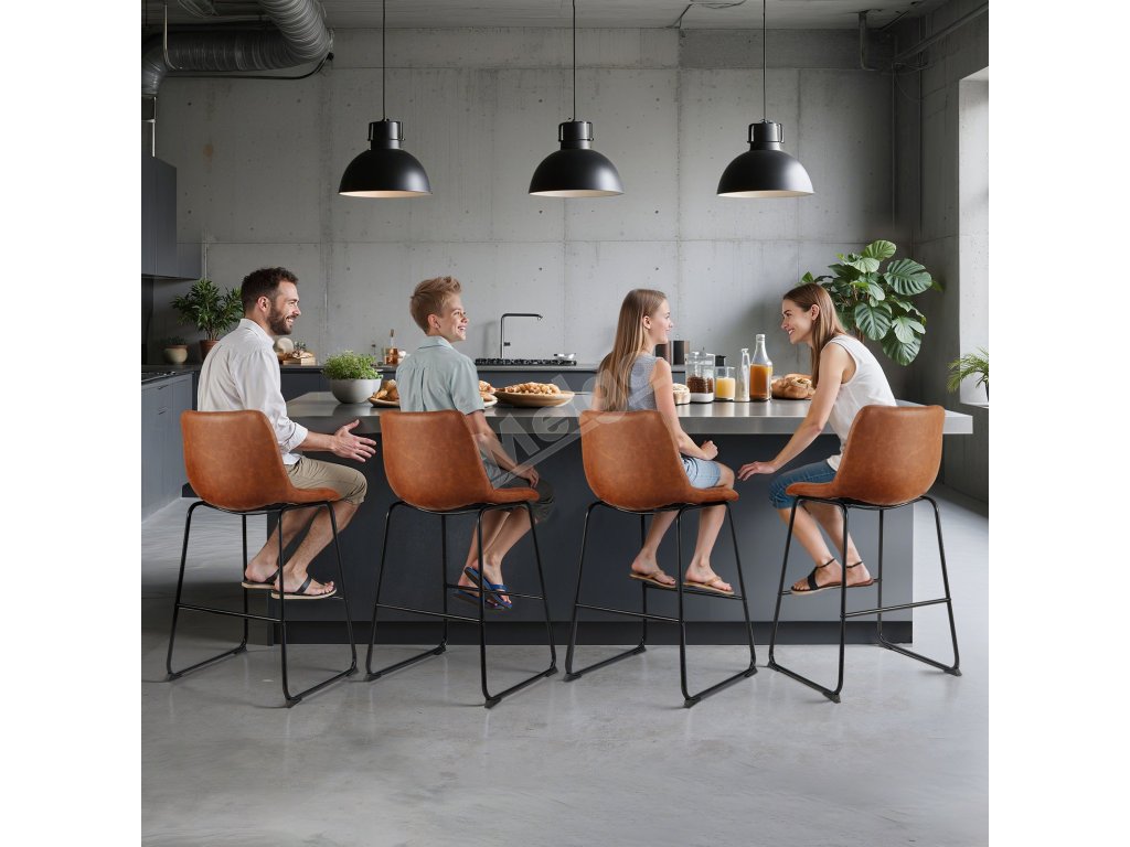 Pultová stolička má vintage PU kůži a opěradlo racionálního tvaru, které kombinuje moderní a hřejivý styl. Bez námahy se začlení do různých stylů interiéru a pozvedne celkový dojem z prostoru.