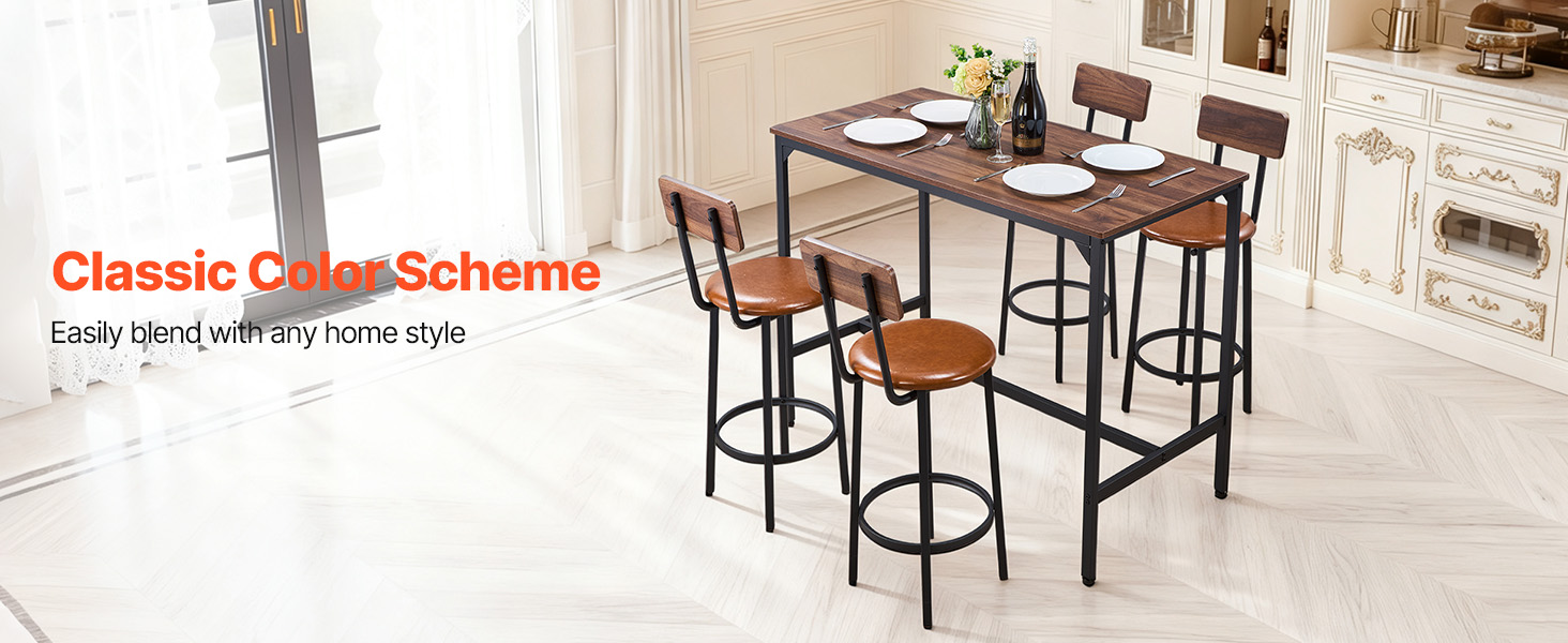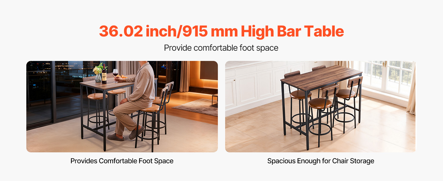 Tento kuchyňský stůl s barovou stoličkou o výšce 36,02 palce/915 mm je navržen s ohledem na praktičnost. Jeho výška poskytuje pohodlný a ničím nerušený prostor pro nohy, zatímco dostatečný prostor pod ním umožňuje přehledné uložení židlí a udržuje tak váš prostor uklizený a organizovaný.