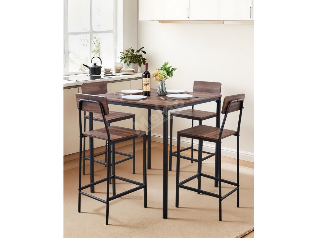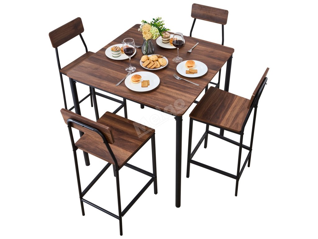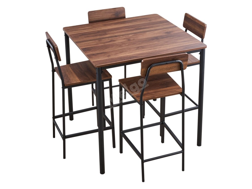 Barový set 5 ks 889mm čtvercový stůl se 4 židlemi, ořech/černá