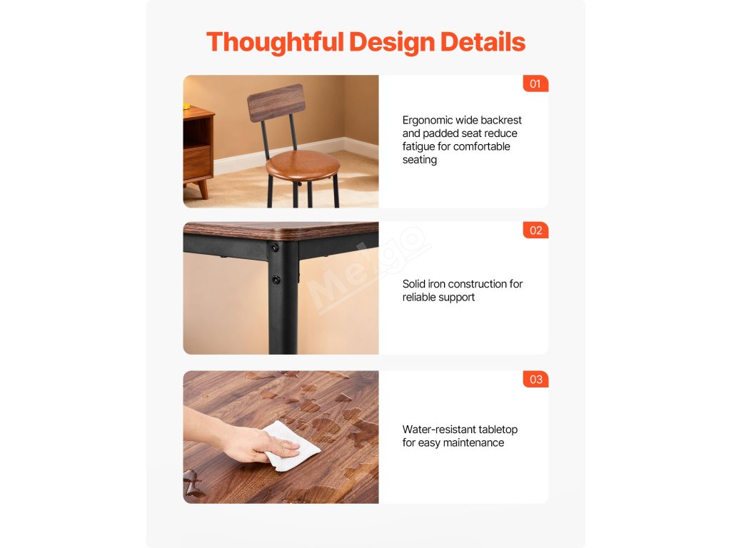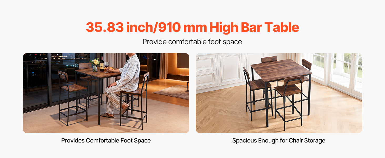 Tento kuchyňský stůl s barovou stoličkou o výšce 35,83 palce/910 mm je navržen s ohledem na praktičnost. Jeho výška poskytuje pohodlný a ničím nerušený prostor pro nohy, zatímco dostatečný prostor pod ním umožňuje přehledné uložení židlí a udržuje tak váš prostor uklizený a organizovaný.