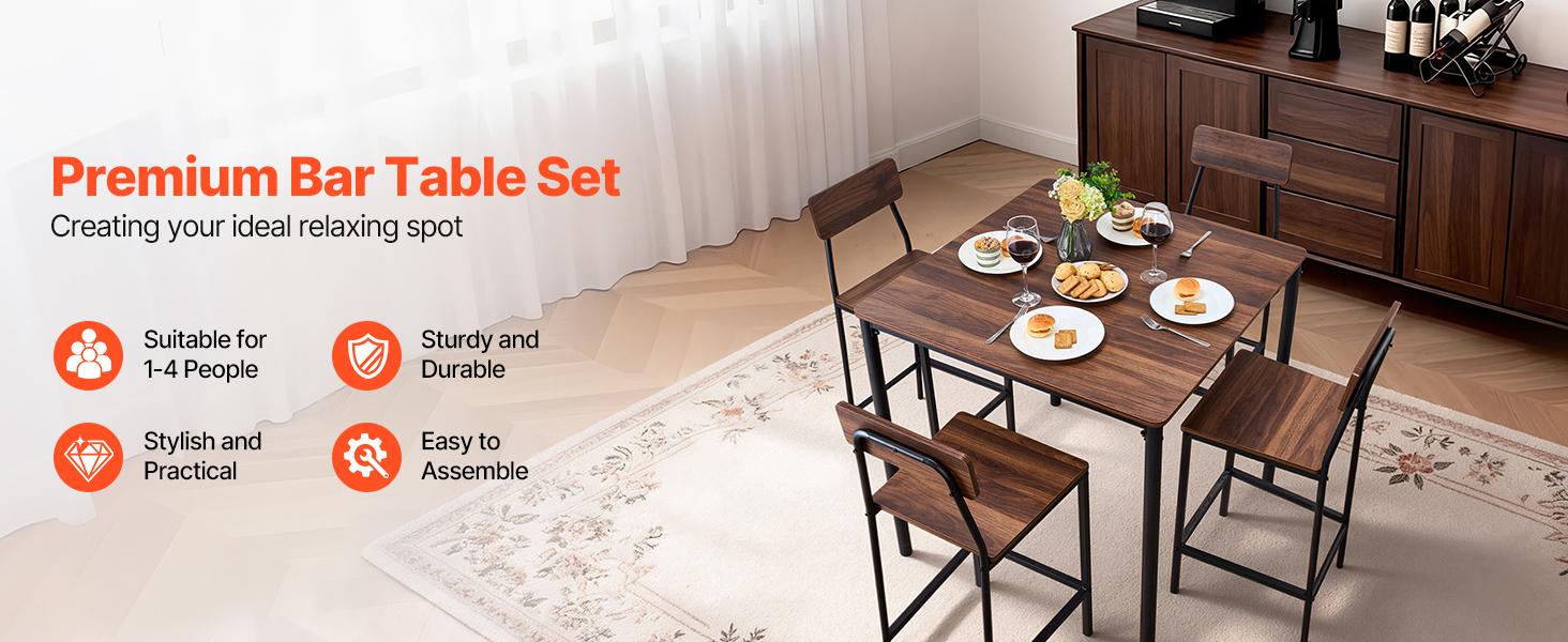 Tento prémiový obdélníkový barový stůl se židlí je speciálně navržen pro 1 až 4 osoby. Díky své robustní a odolné konstrukci kombinuje stylový vzhled s praktičností. Snadno se instaluje a umožňuje vám rychle vytvořit dokonalý prostor pro odpočinek a zábavu.
