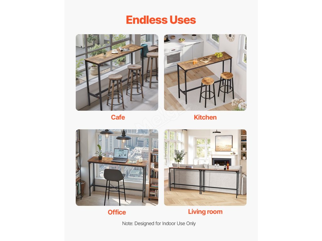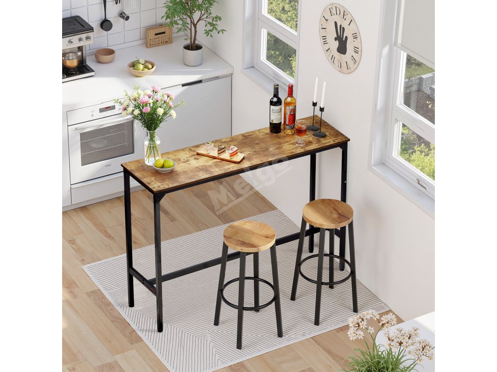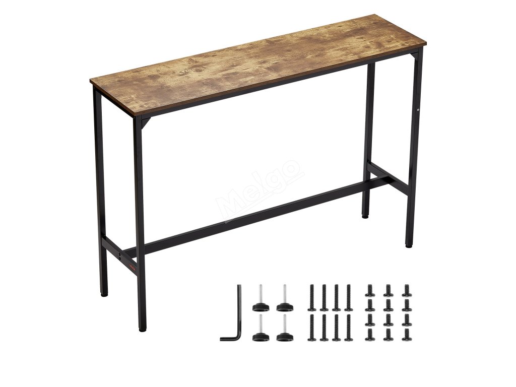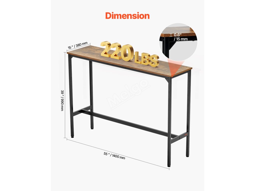 Barový stůl s kovovým rámem, 55×15×39 in, úzký, hnědo-černý, do kuchyně