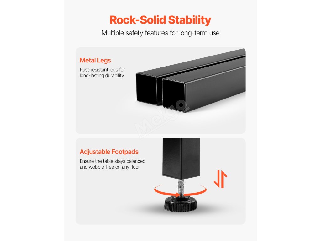 Nastavitelné podložky pod nohy zajišťují stabilní povrch na jakékoli podlaze, takže tento koktejlový stolek je dostatečně univerzální pro jakékoli prostředí, od jídelen až po pracoviště.