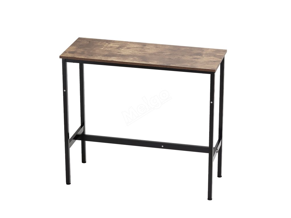 Barový stůl s kovovým rámem, úzký, 39×16×35.5 in, hnědo-černý