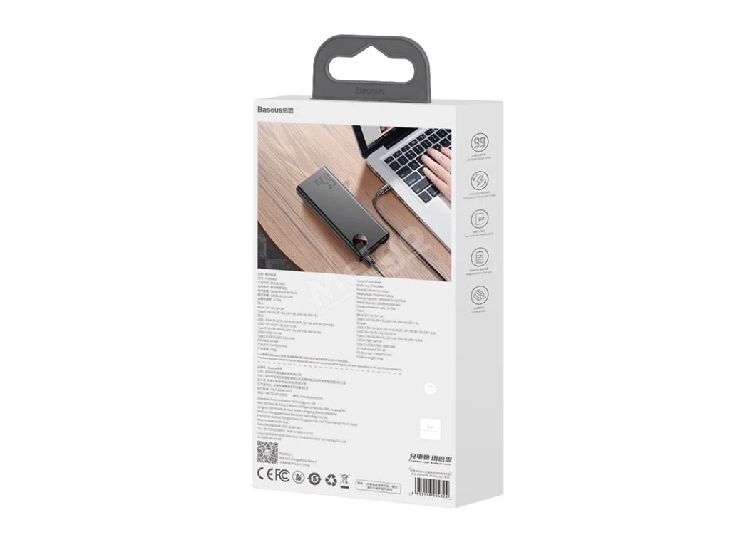 Díky produktu od společnosti Baseus můžete rychle nabít svůj notebook nebo telefon. Zařízení podporuje protokol rychlého nabíjení 65W Power Delivery, takže baterie MacBooku bude plně nabitá již za 2 hodiny. Powerbanka je vybavena dvěma výstupními porty USB a výstupními/vstupními porty USB-C a micro USB.