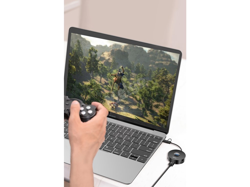 Hub Baseus tiež prichádza s praktickým adaptérom USB-C, vďaka ktorému môžete adaptér pripojiť aj k smartfónu alebo tabletu (podmienkou činnosti je podpora OTG), čo vám poskytuje ešte viac možností. Rýchly prenos dát umožňuje rýchly prenos dát, a to až do 5 Gbps.