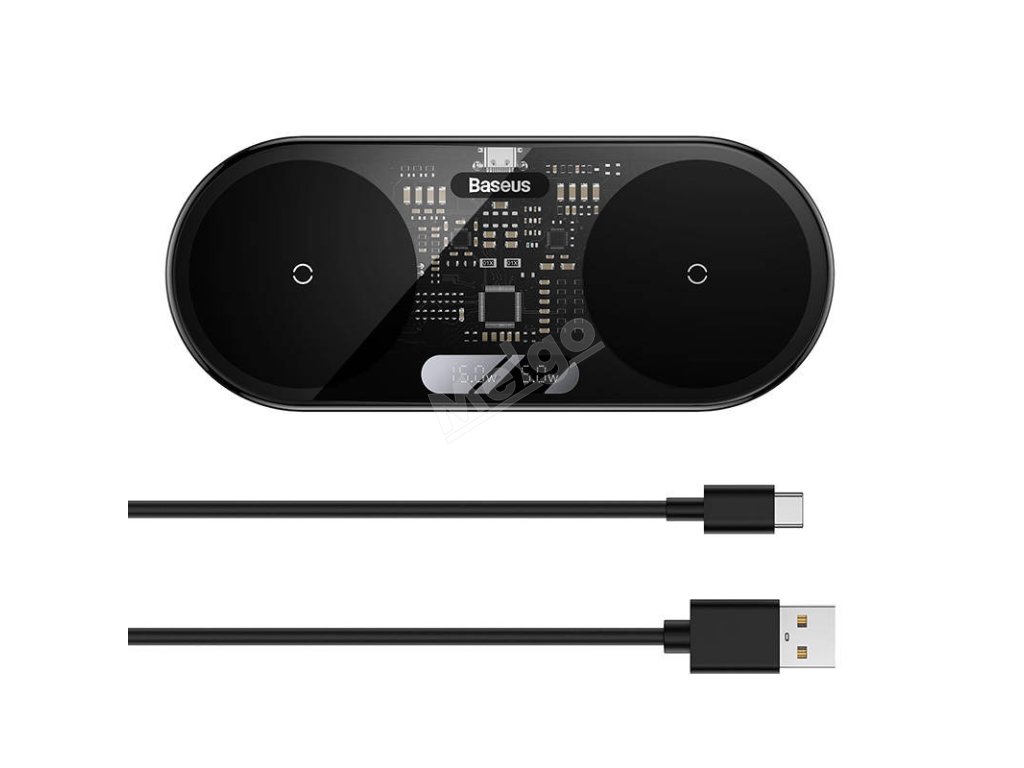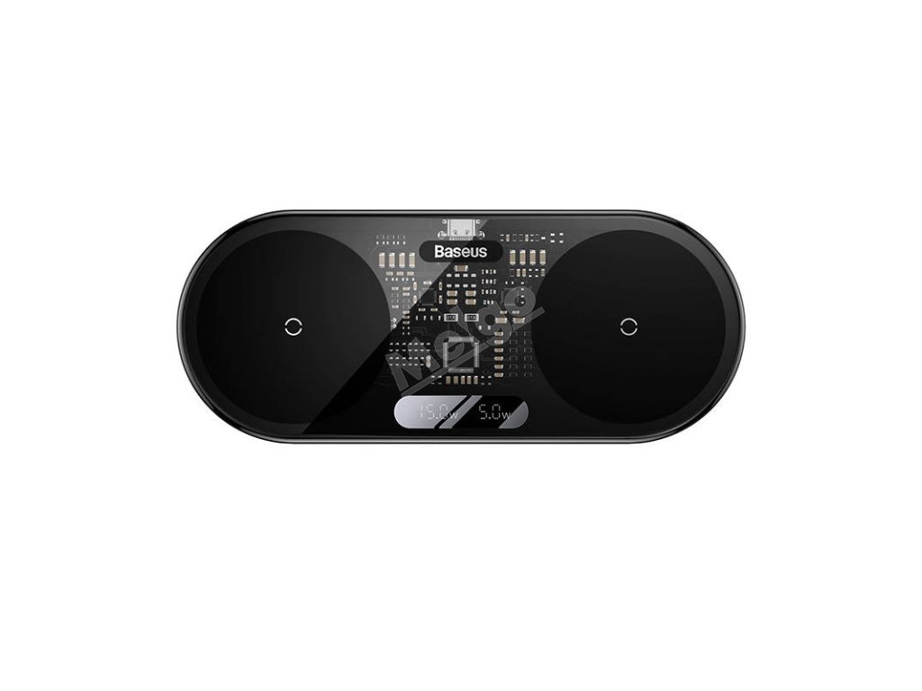 Baseus Digitální LED displej Duální bezdrátová nabíječka Qi, 20 W