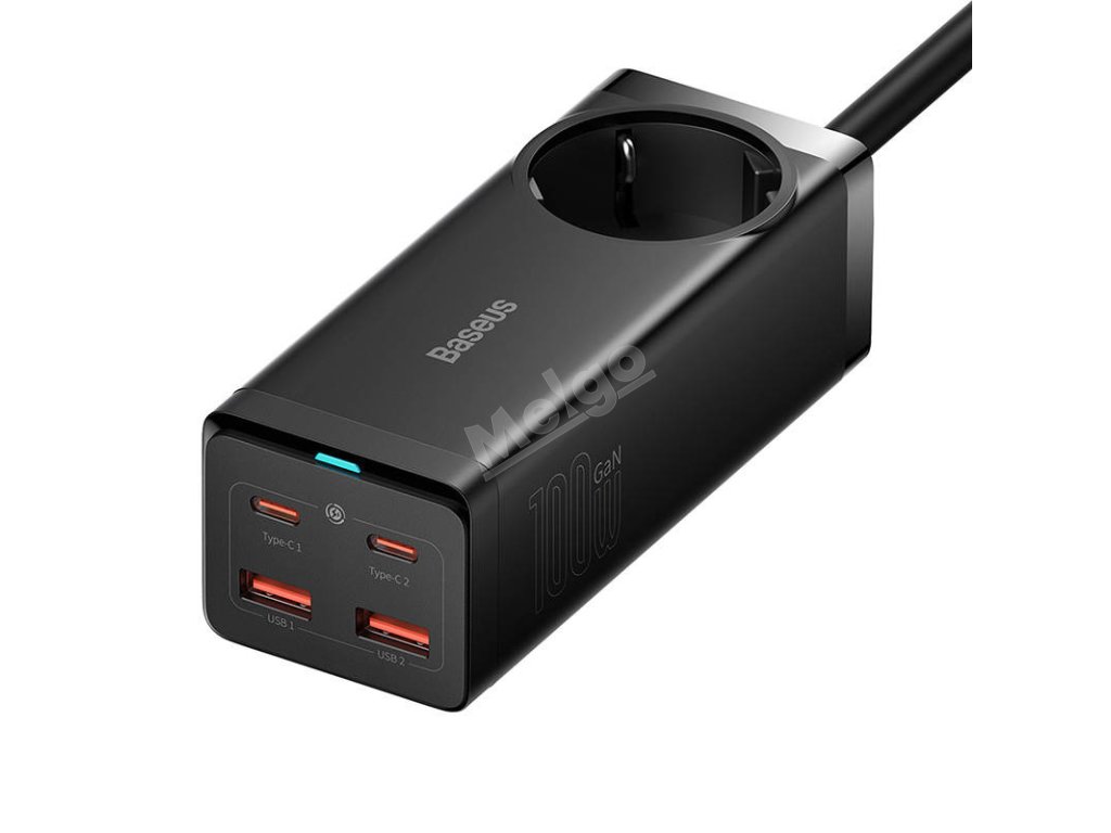 Baseus GaN3 Pro nástěnná nabíječka / napájecí pás 2xUSB + 2xUSB-C + AC, 100W (černá)