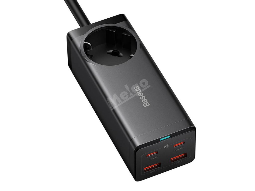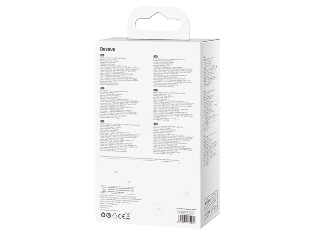 Rychle a bezpečně nabíjejte svá zařízení pomocí síťové nabíječky/napájecí lišty Baseus GaN3 Pro! Výrobek je vybaven 4 nabíjecími vstupy, které nabíjejí maximálním výkonem 100 W. Má také síťovou zásuvku, která vám mimo jiné umožní připojit k elektřině projektor nebo rychlovarnou konvici. Pokročilý systém ochrany zajišťuje nejvyšší úroveň bezpečnosti při používání. Napájecí kabel o délce 1,5 m vám dává větší volnost, zatímco nabíjecí kabel USB-C/USB-C, který je součástí sady, usnadňuje nabíjení.