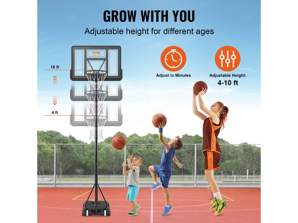 Tento nastavitelný basketbalový koš je navržen s možností nastavení výšky, takže si hru mohou užít hráči všech věkových kategorií a úrovní dovedností, takže je ideální pro děti i dospělé.