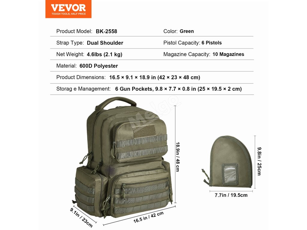 | Správa úložiště | 6 kapes na zbraně, 9,8 × 7,7 × 0,8 palce (25 × 19,5 × 2 cm) |