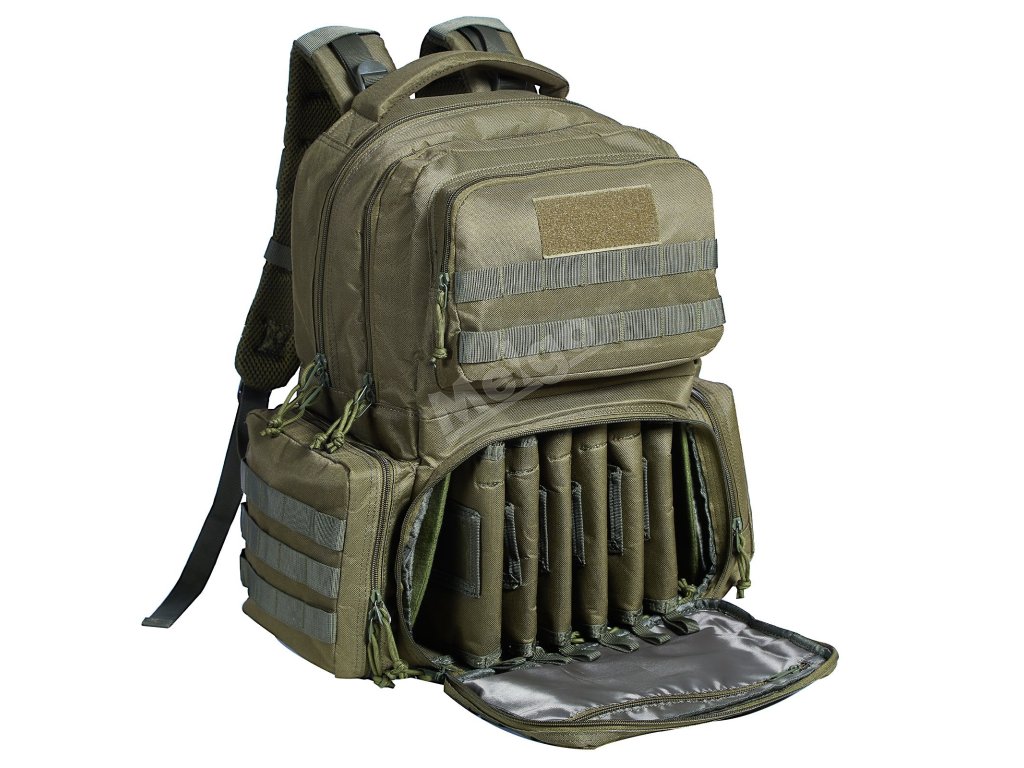 Batoh na 6 pistolí, 6 pouzder, 10 zásobníků, zamykací zip, zelený