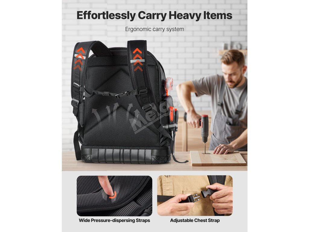 Tento těžký batoh na nářadí unese až 70 kg a podporuje režim nošení v ruce i v batohu. Díky pohodlnému systému nošení máte volné ruce, takže se můžete volně pohybovat a zároveň přenášet veškeré nářadí.