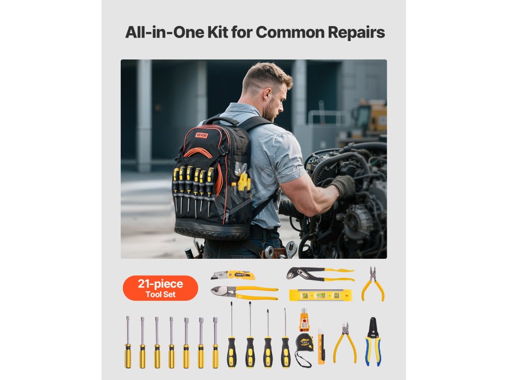 Batoh na nářadí pro náročné použití: Obsahuje 21dílnou sadu nářadí