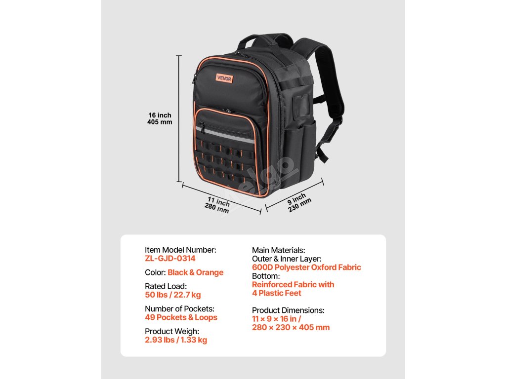 Tento těžký batoh na nářadí unese až 50 kg a podporuje režim nošení v ruce i v batohu. Díky pohodlnému systému nošení máte volné ruce, takže se můžete volně pohybovat a zároveň přenášet veškeré nářadí.