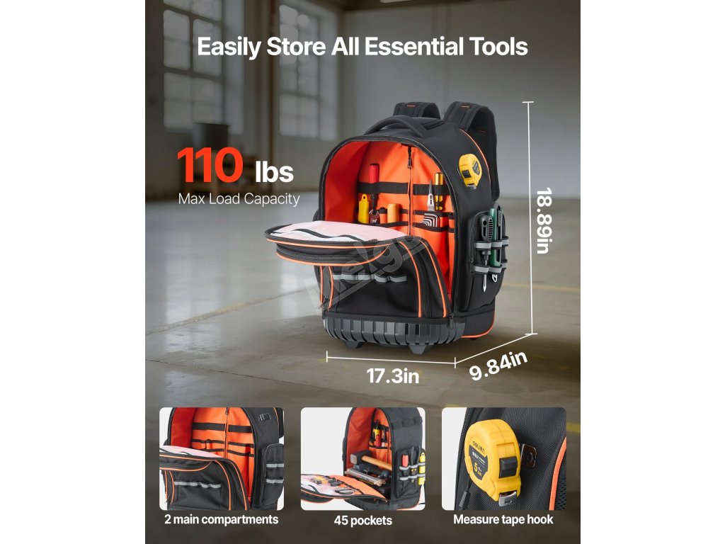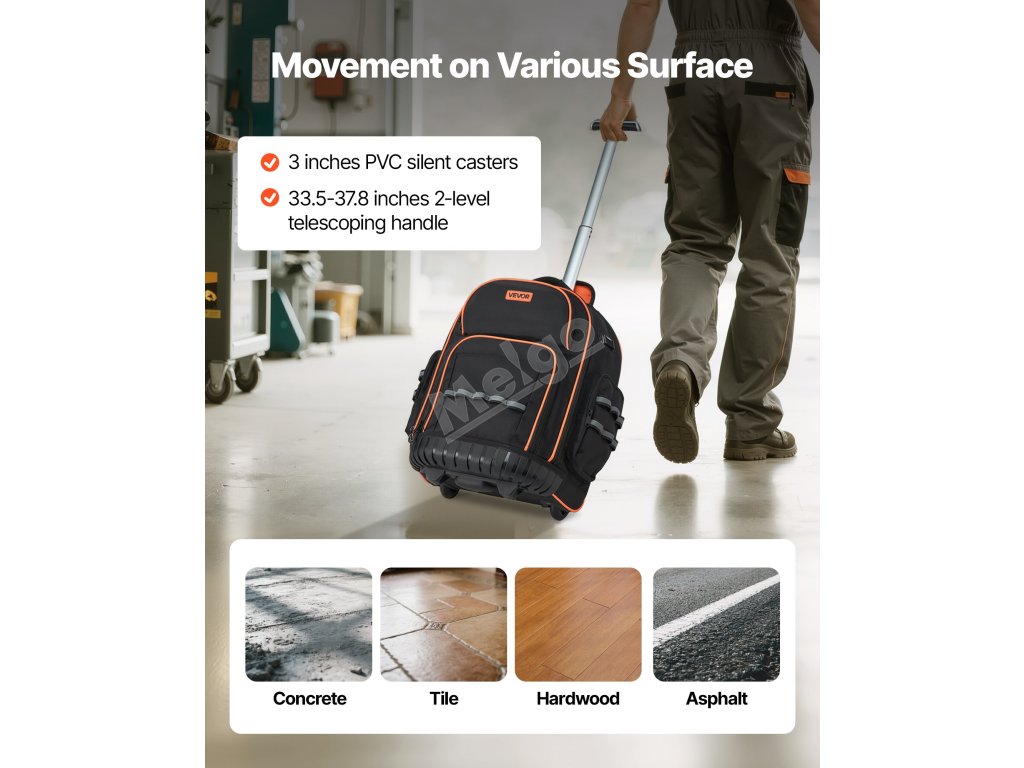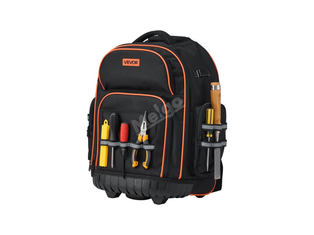 Tento pojízdný batoh na nářadí na kolečkách se 45 kapsami a háčkem na svinovací metr vám bez problémů uspořádá nářadí! Díky nastavitelné rukojeti a tichým kolečkům se snadno kutálí po tvrdých površích a šetří váš čas i energii.
