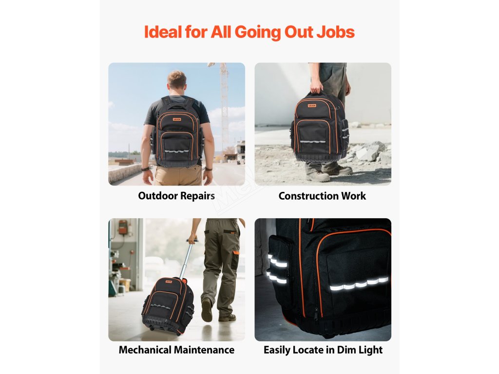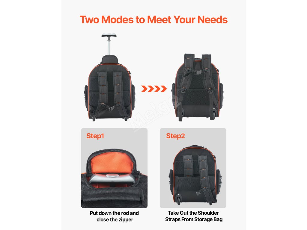 Tento mobilní batoh na nářadí 2 v 1 je dokonalým řešením pro vaši práci! Unese až 110 kg a může se přepínat mezi batohem a pojízdným vozíkem, takže přeprava těžkého nářadí je hračka.