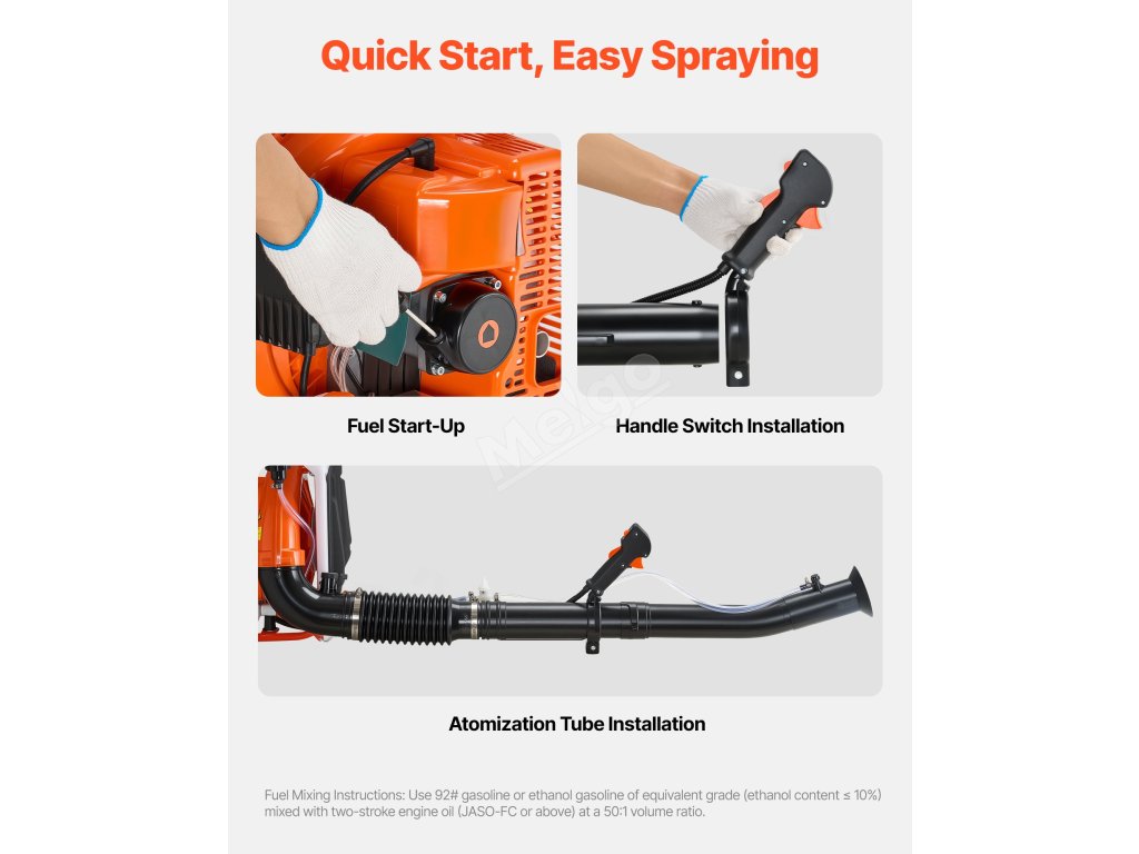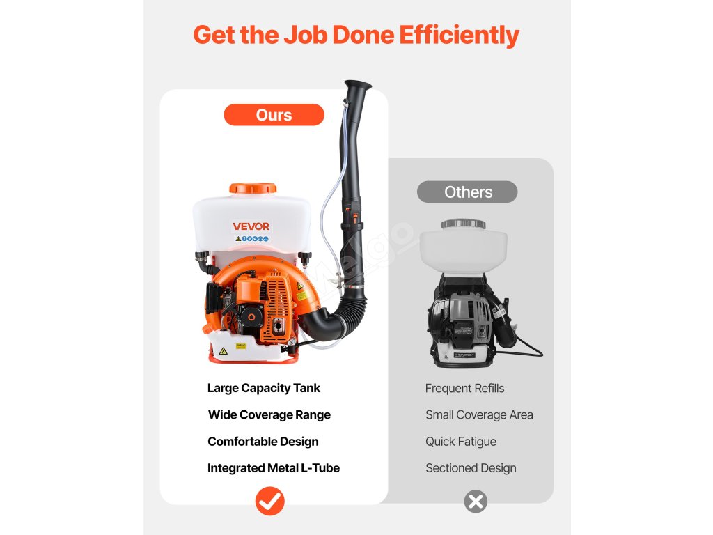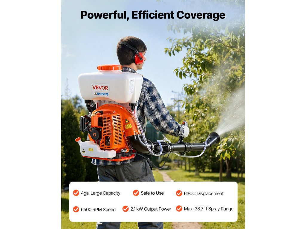 S tímto ručním mlhovým postřikovačem si užijete efektivní postřik. Díky vysoce výkonnému motoru o výkonu 2,1 kW dosahuje postřikovací vzdálenosti až 38,7 m. Lehká konstrukce usnadňuje a zefektivňuje kritickou kontrolu zvířat a různé postřikové úkoly.