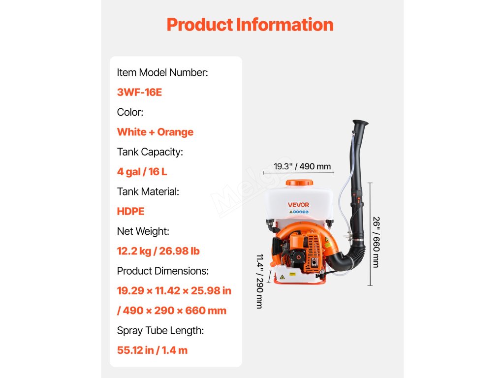 | Dĺžka rozprašovacej trubice | 55.12 palcov / 1,4 m |