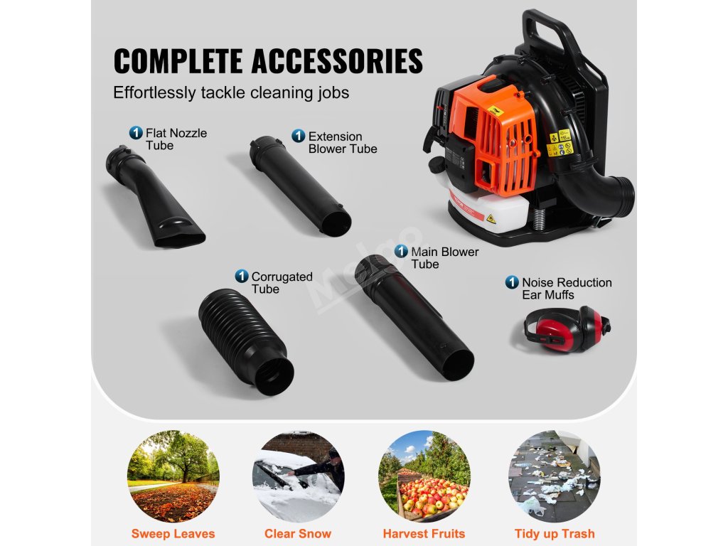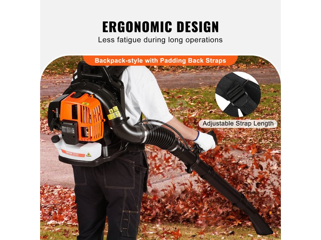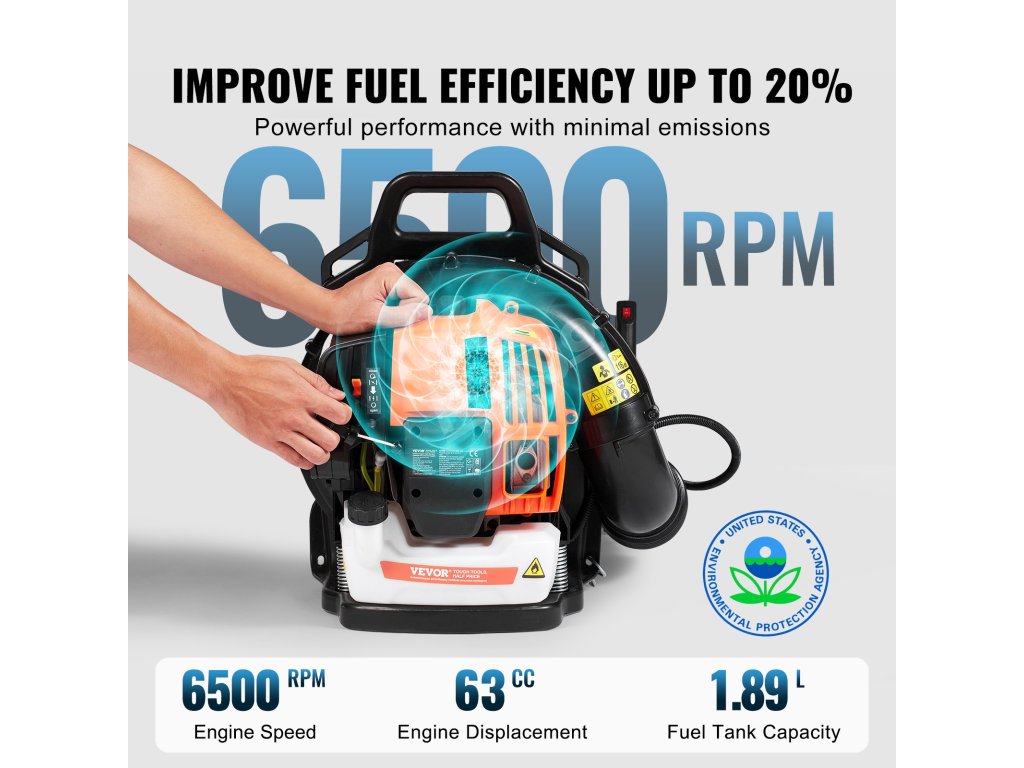 Batohový foukač listí 63CC 2-taktní, 1.89L nádrž, 1110CFM, 220MPH