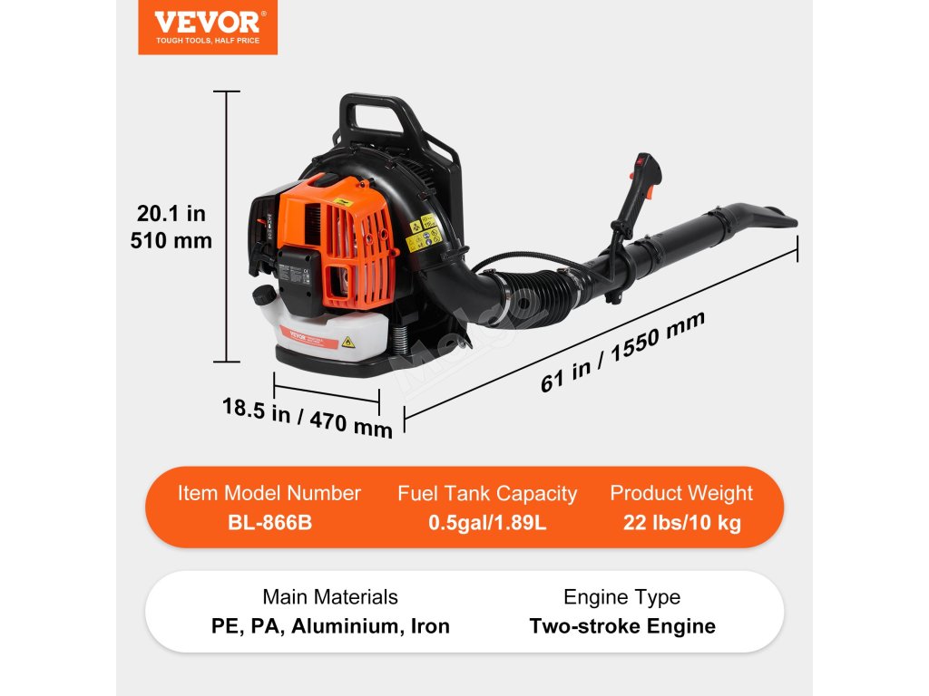 Tento plynový foukač listí s výkonným dvoutaktním motorem poskytuje silnou a intenzivní sílu větru, která snadno a účinně odstraní listí ze dvora.