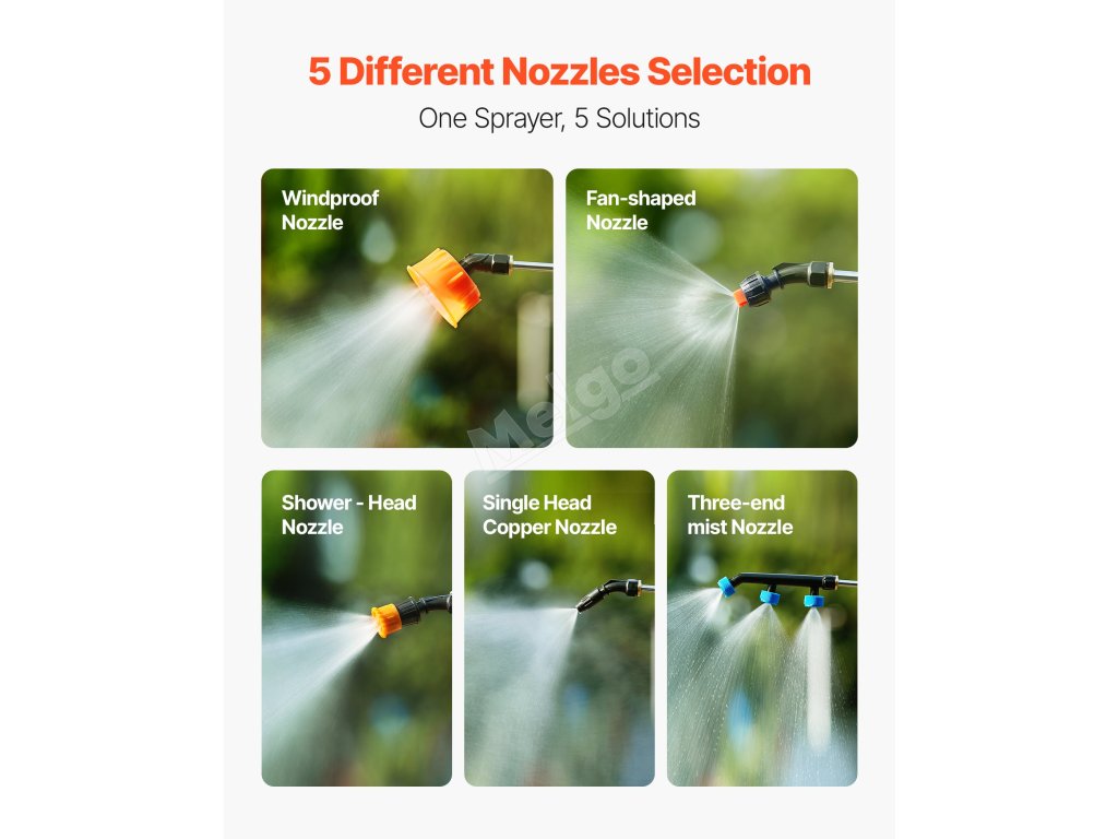 | Hlavné materiály | Nádrž z PP (polypropylénu), striekacia tyč zo sklenených vlákien, striekacia tyč z nehrdzavejúcej ocele, plastové trysky |