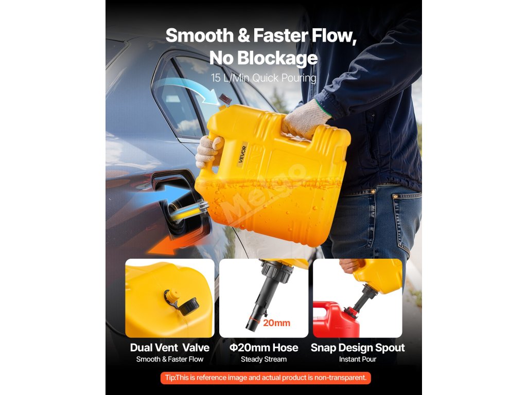 Tato přenosná nádoba na palivo je vyrobena ze silného HDPE s 2mm stěnami, které zajišťují pevnost a odolnost. Je vybavena nepropustným uzávěrem a výlevkou z PP pro plynulé nalévání při rychlosti 15 l/min. Je ideální pro automobily, motocykly, terénní výlety a venkovní použití.