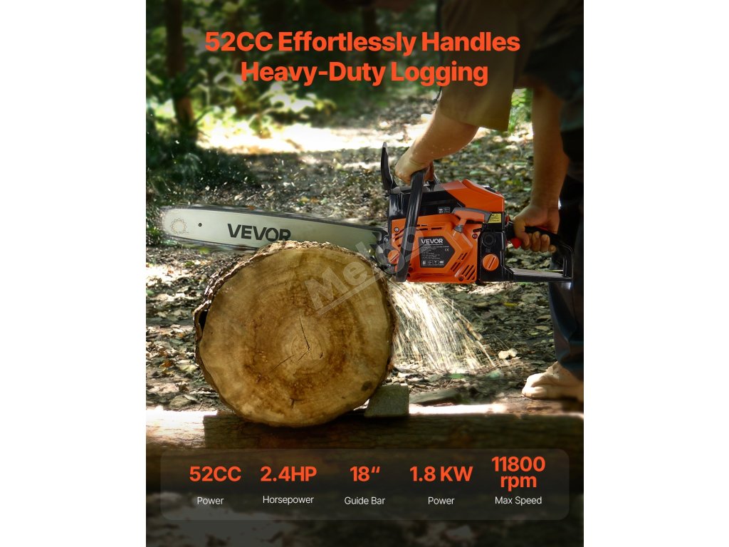 Benzinová řetězová pila 52 cc, 18 inch, 2.4 hp, protiskluzová rukojeť