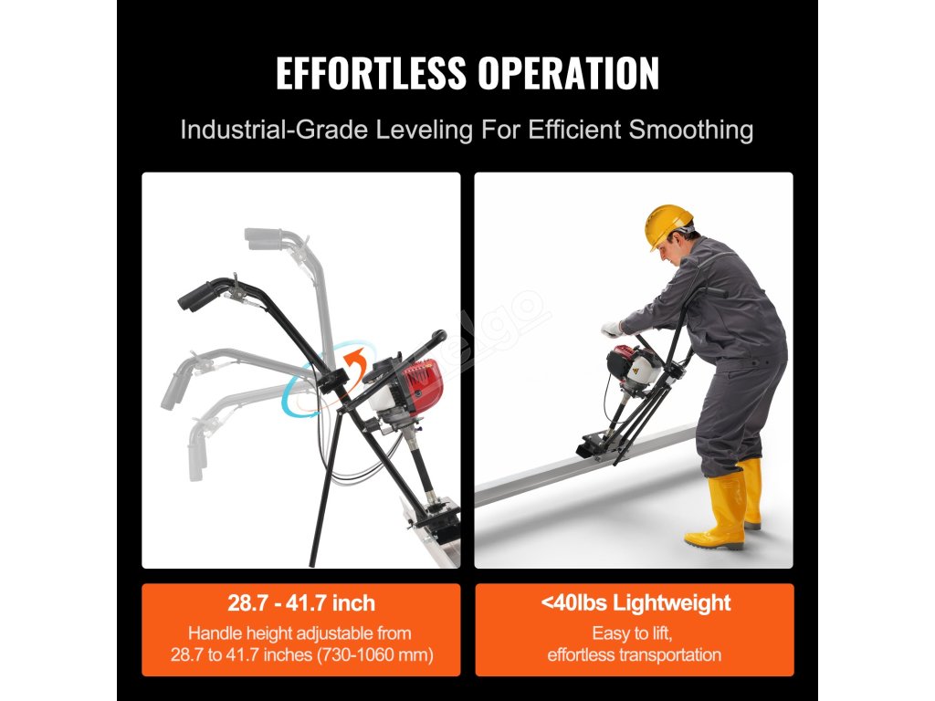 Díky nastavitelné výšce rukojeti od 28,7 do 41,7 palců / 730-1060 mm a lehkému tělu s hmotností nižší než 40 kg ve spojení s nastavitelnými stojany vám poskytne pohodlný a snadný zážitek ze stavby bez obav z dlouhých hodin provozu.
