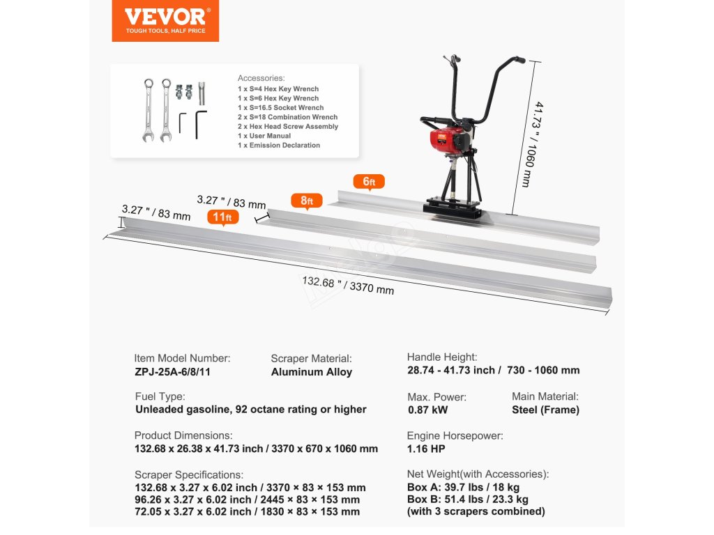 Benzinová vibrační stěrka, hliníkové lišty 6ft/8ft/11ft, 4-takt