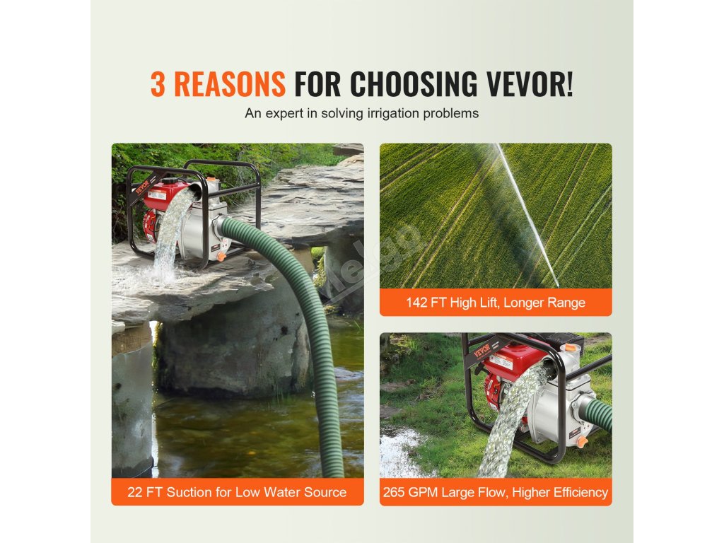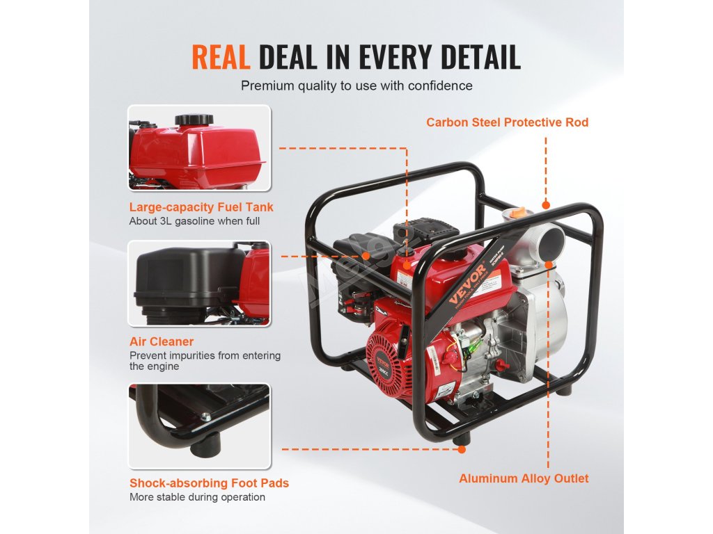 Nebudete se muset potýkat s omezením dodávky elektřiny a můžete začít pracovat na zásobování vodou kdekoli a kdykoli! Vodní čerpadlo s plynovým motorem je ideální pro zavlažování, odvodňování, výměnu vody v bazénu atd.