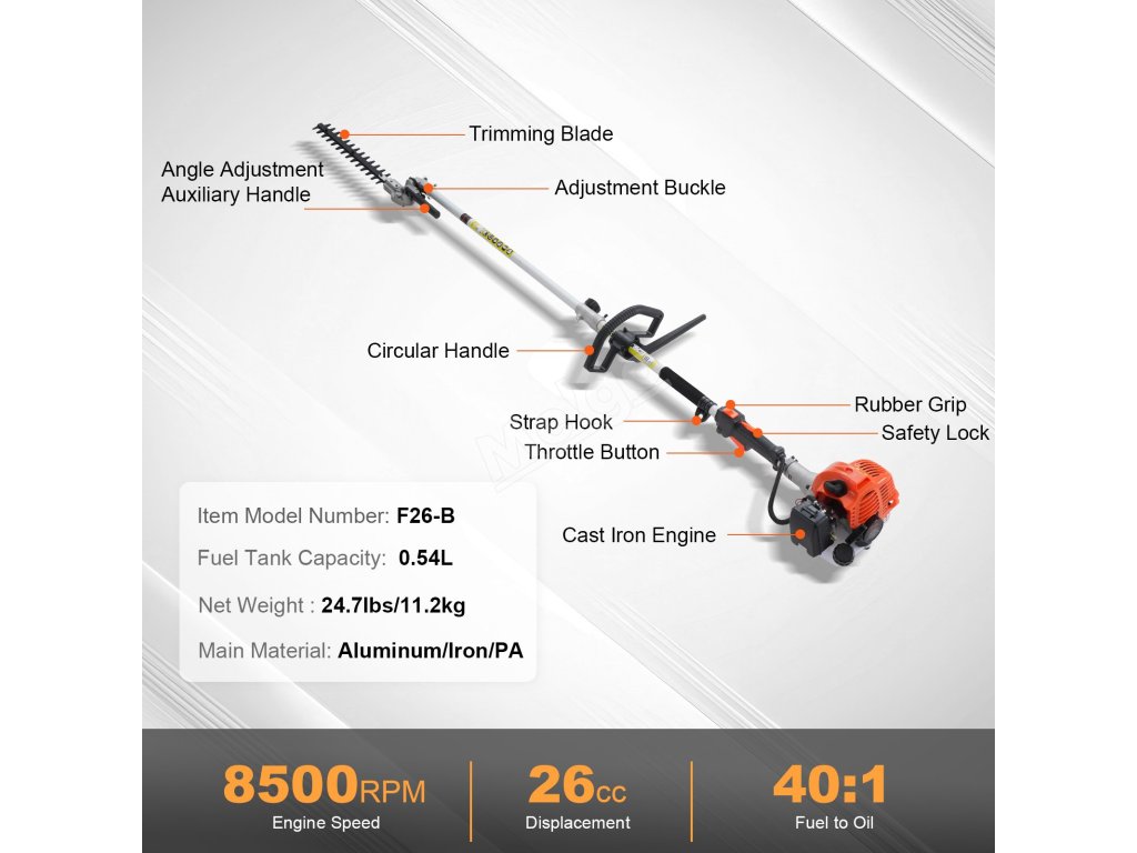 Benzínový plotostřih na tyči 15.7-inch 26CC dvoustranný nůž 270° hlava
