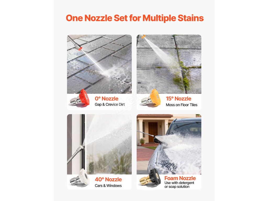 Odpověď: Při čištění předmětů, u nichž hrozí riziko odlupování barvy, doporučujeme použít trysku s úhlem 40°, aby se snížila pravděpodobnost poškození povrchu.
