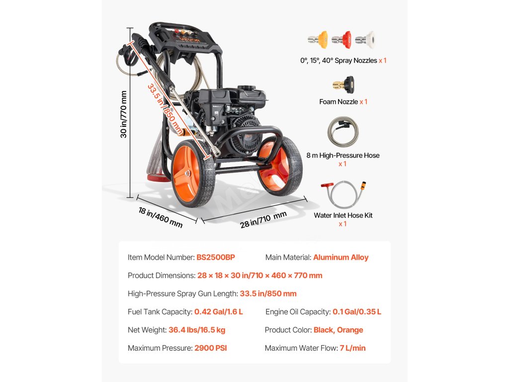 | Dĺžka vysokotlakovej striekacej pištole | 33,5 palca / 850 mm |