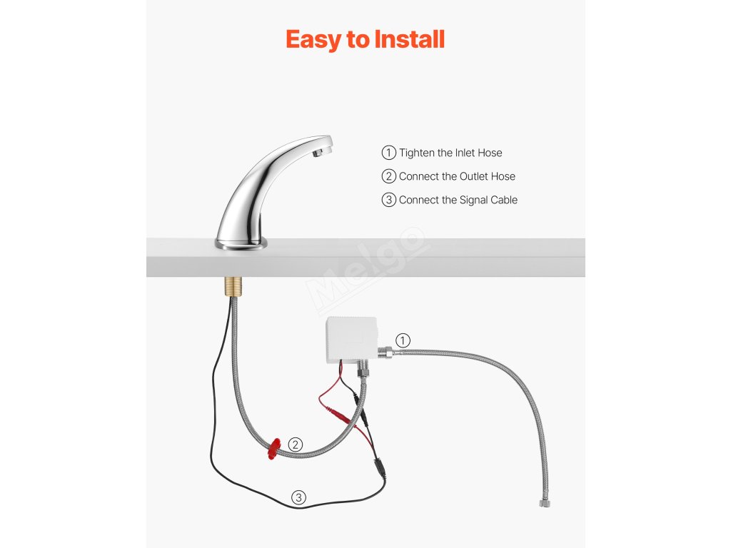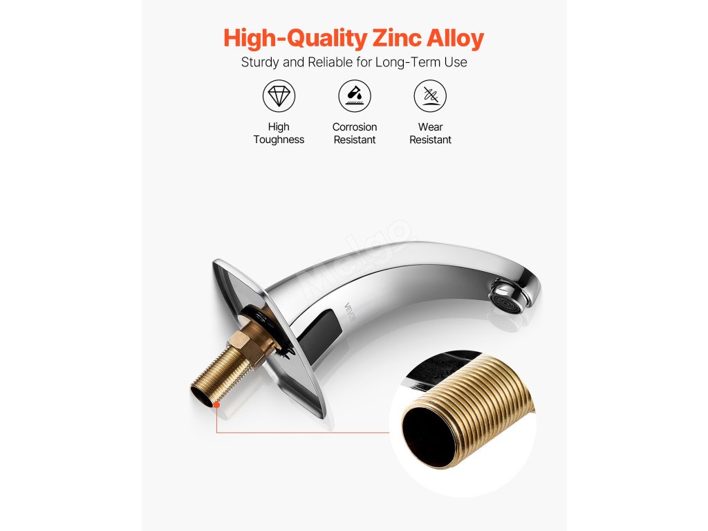 Tato umyvadlová baterie je napájena nízkonapěťovými bateriemi, je bezpečná a snadno se udržuje. Nevyžaduje žádné složité zapojování ani externí napájení, stačí jen nainstalovat a používat.