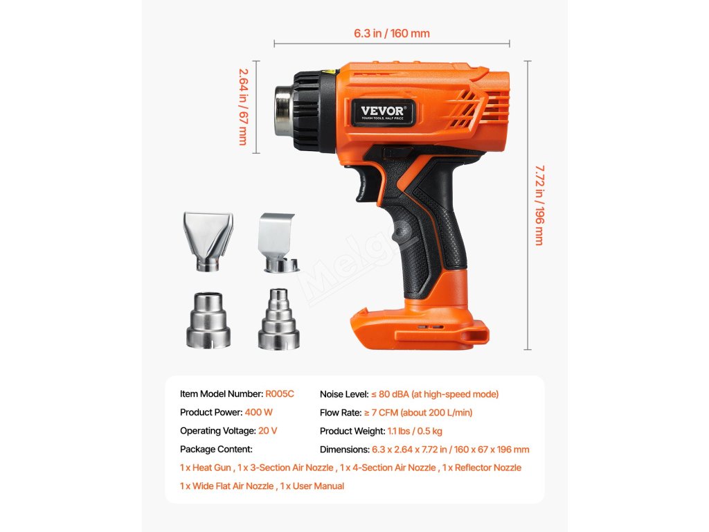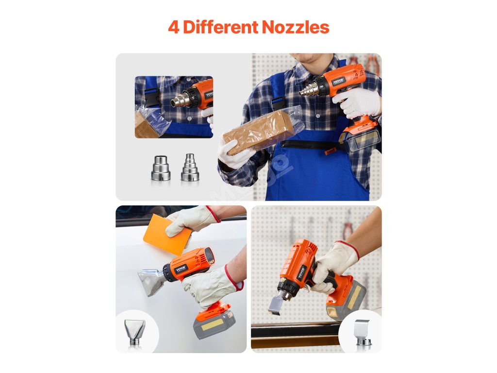 Táto multifunkčná prenosná teplovzdušná pištoľ obsahuje 4 trysky pre rôzne potreby, od zmršťovania, balenia vinylu až po odstraňovanie farby. Teplovzdušná zmršťovacia pištoľ je ideálna pre profesionálov aj domácich majstrov a je spoľahlivým spoločníkom pri domácich, štúdiových a vonkajších projektoch.