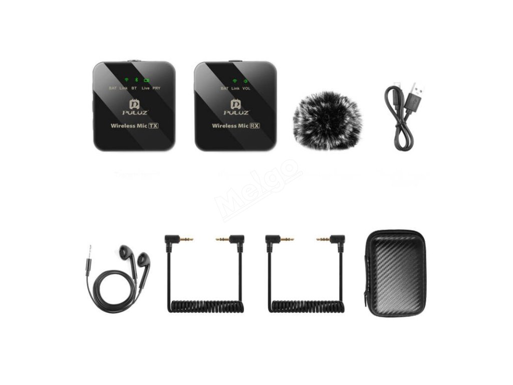PULUZ 1 TX + 1 RX Bezdrátový mikrofon na kabelu