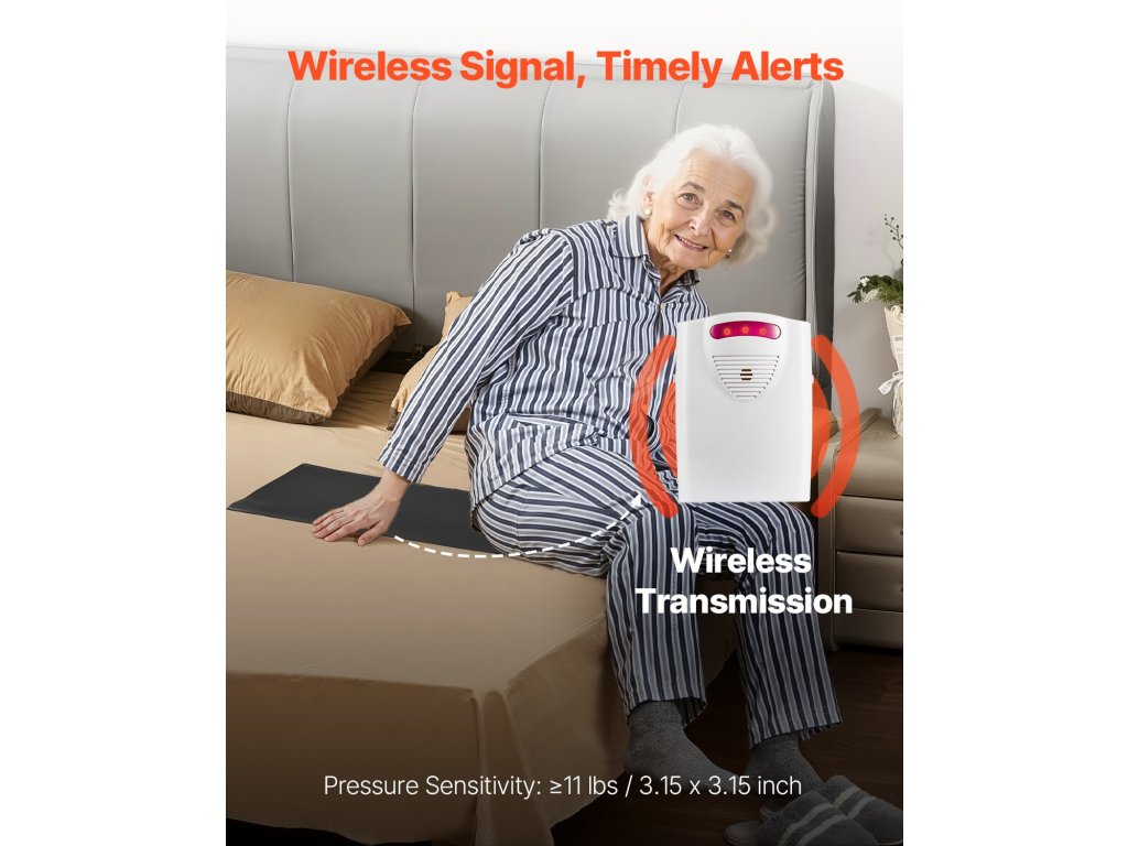 Tento lůžkový alarm pro seniory je vybaven 14 x 30palcovou podložkou se senzorem, která zajišťuje spolehlivé monitorování starších osob a pacientů. Je vybaven praktickým pagerem a bezdrátovým přenosem na vzdálenost až 300 stop, takže ošetřovatelé mohou dostávat včasná upozornění a minimalizovat riziko pádu pacienta.