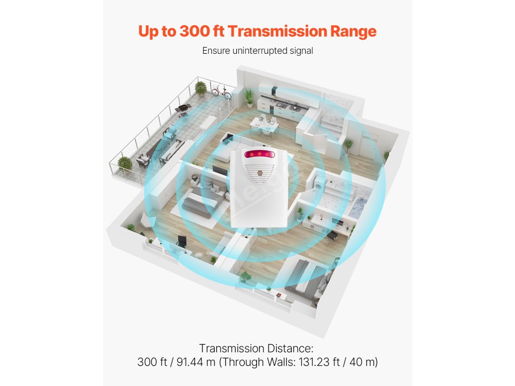 Tento bezdrátový noční alarm má dosah bezdrátového přenosu 300 stop a průchodnost zdí až 131 stop. To výrazně zvyšuje efektivitu péče a rychlost reakce a poskytuje komplexnější bezpečnostní ochranu pro vás a vaše blízké.
