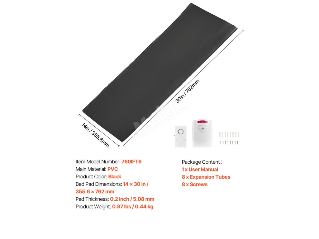 Bezdrátový lůžkový senzorový alarm 14×30" s pagerem pro seniory
