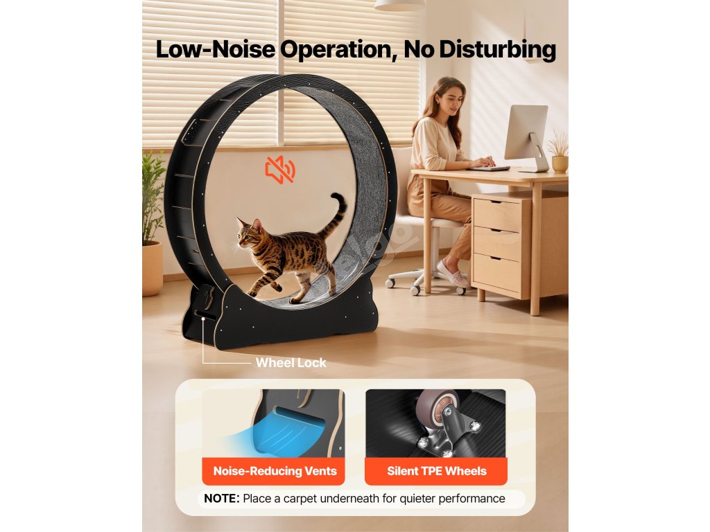 Běžecká i zastavovací kola jsou vyrobena z tichých koleček TPE, která tlumí a snižují vibrace, čímž minimalizují hluk. Nechte svou noční aktivní kočku volně pobíhat, aniž by rušila váš klid.