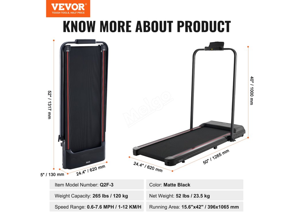 Běžecký pás pod stůl 2.5hp, kapacita 265 lbs, skládací s led displejem