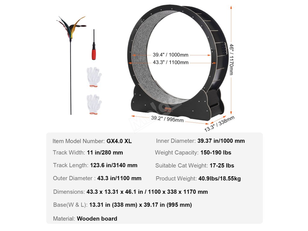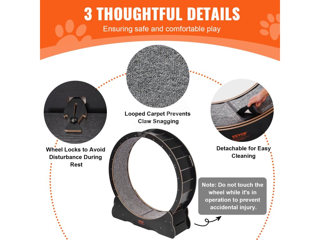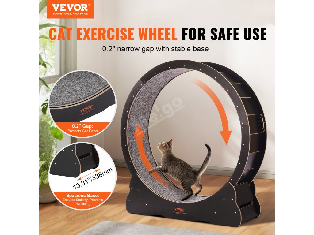 Toto kolečko na cvičení koček je vyrobeno z masivního dřeva, což zaručuje jeho dlouhou životnost. Díky prostorné základně o průměru 13,31 palce poskytuje vaší kočce stabilní prostor pro cvičení. Jedinečná konstrukce s mezerou 0,2"/6 mm zajišťuje bezpečnost a umožňuje vašemu kočičímu společníkovi volně běhat po kolečku.