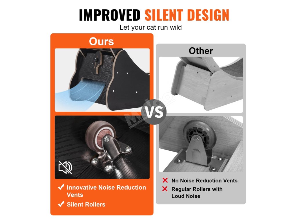 Díky tichému kolečku a otvorům pro redukci hluku dokáže naše kočičí kolečko snížit hluk o 10-20 % a vytvořit tak pro vašeho mazlíčka klidné a příjemné prostředí pro cvičení. To vám umožní harmonické soužití s vaším domácím mazlíčkem a rodinou.