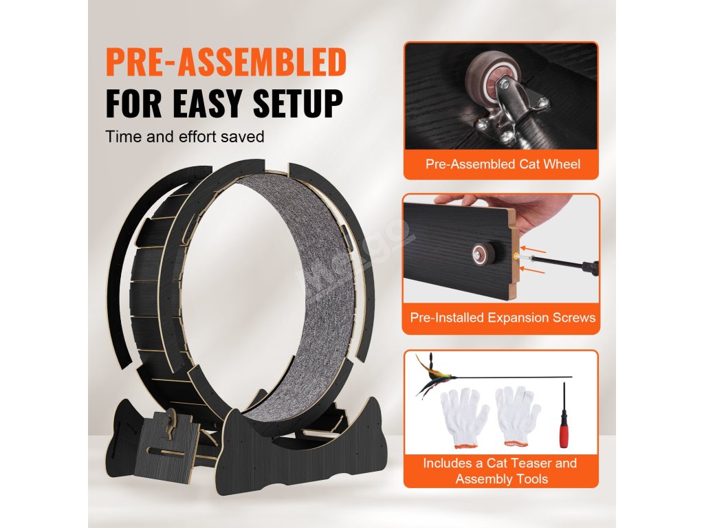 Díky vyjímatelné vnitřní podložce je čištění hračka. Vnitřní podložku lze snadno vyjmout a vyčistit nebo vyměnit. Předinstalované kolečko kočičího běhounu a distanční šrouby usnadňují a zvyšují bezpečnost instalace a poskytují vám větší pohodlí.