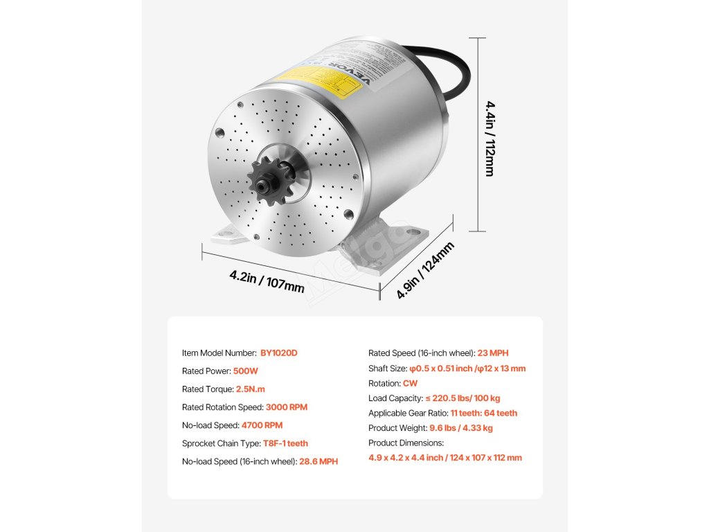 Vylepšete svou jízdu s jistotou a zažijte vyšší výkon, spolehlivost a potěšení z jízdy díky 500W 36V bezkartáčovému stejnosměrnému motoru, vylepšenému regulátoru, jmenovitému točivému momentu 2,5 N.m a ovládání směru hodinových ručiček. Bez námahy zdolávejte stoupání a snadno projíždějte náročným terénem.