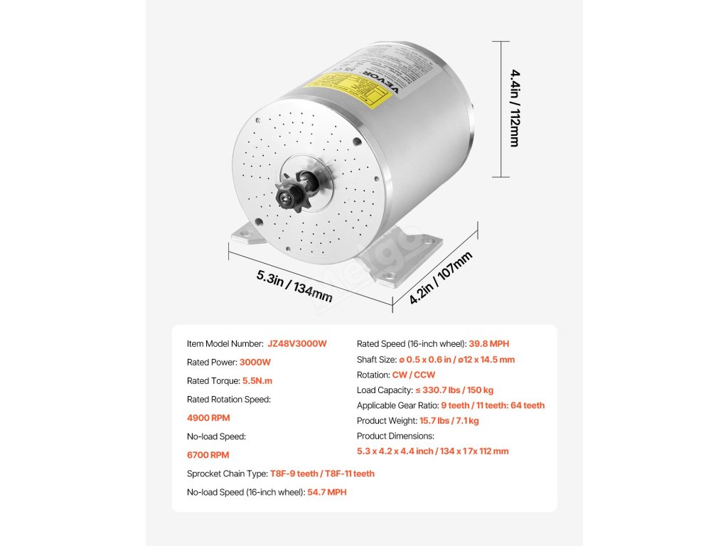 Vylepšete svou jízdu s jistotou a zažijte vyšší výkon, spolehlivost a radost z jízdy díky sadě stejnosměrného bezkartáčového motoru o výkonu 3000 W, napětí 72 V, vylepšenému regulátoru, jmenovitému točivému momentu 5,5 N.m a obousměrnému ovládání ve směru a proti směru hodinových ručiček. Bez námahy zdolávejte kopce a snadno zdolávejte náročný terén.