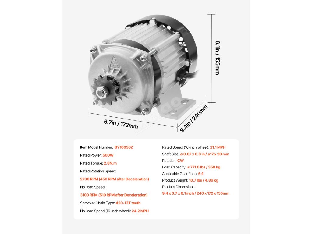 Vylepšete svou jízdu s jistotou a zažijte vyšší výkon, spolehlivost a potěšení z jízdy díky 500W 48V bezkartáčovému stejnosměrnému motoru, vylepšenému regulátoru, jmenovitému točivému momentu 2,8 N.m a ovládání směru hodinových ručiček. Bez námahy zdolávejte stoupání a snadno projíždějte náročným terénem.