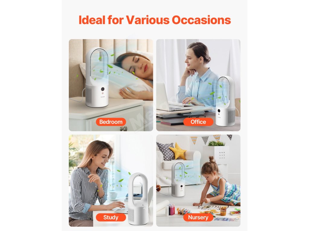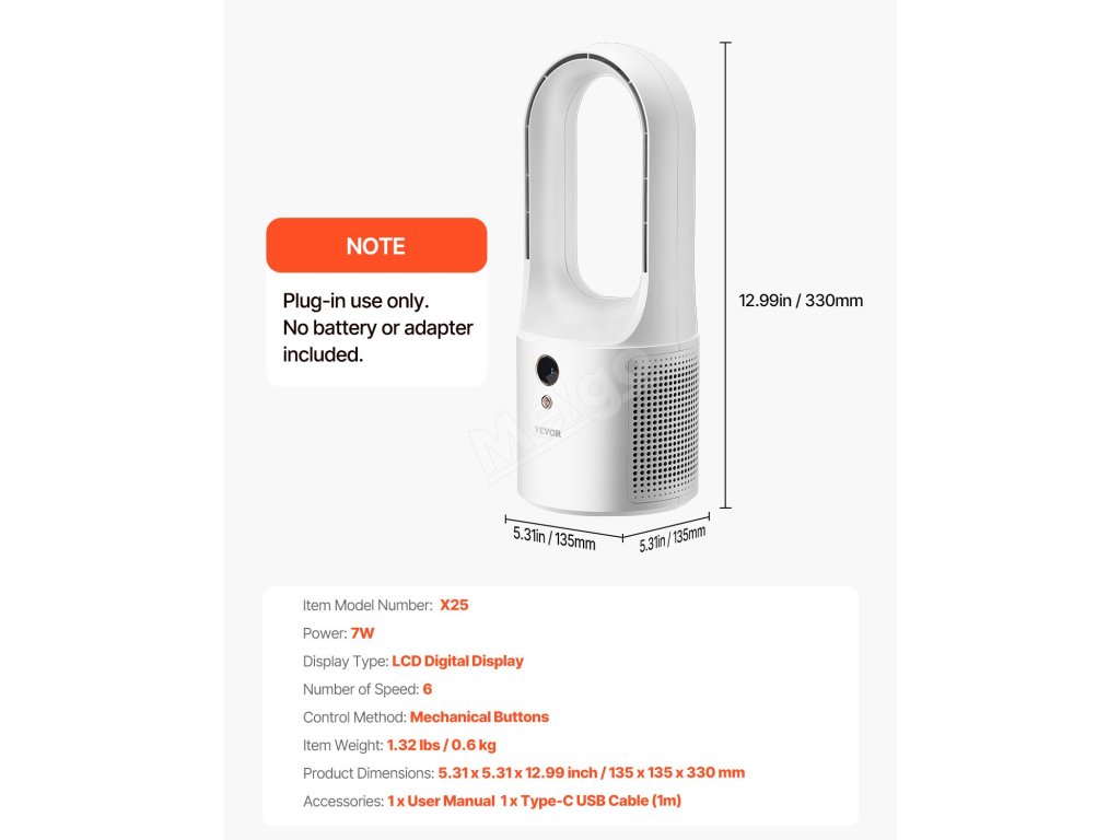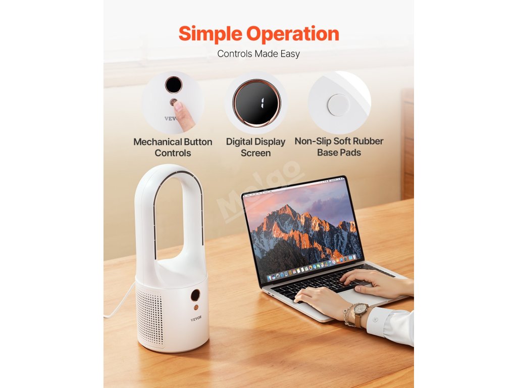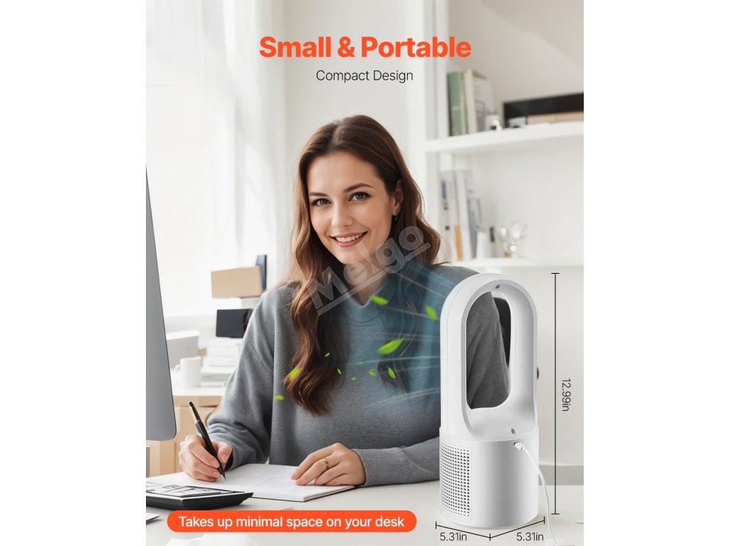 Tento prenosný ventilátor bez lopatiek je kompaktný a všestranný, bez námahy sa zmestí do rôznych priestorov. Jeho cenovo výhodná konštrukcia pripravená na použitie nevyžaduje žiadnu montáž, čo zvyšuje flexibilitu vášho domáceho života.